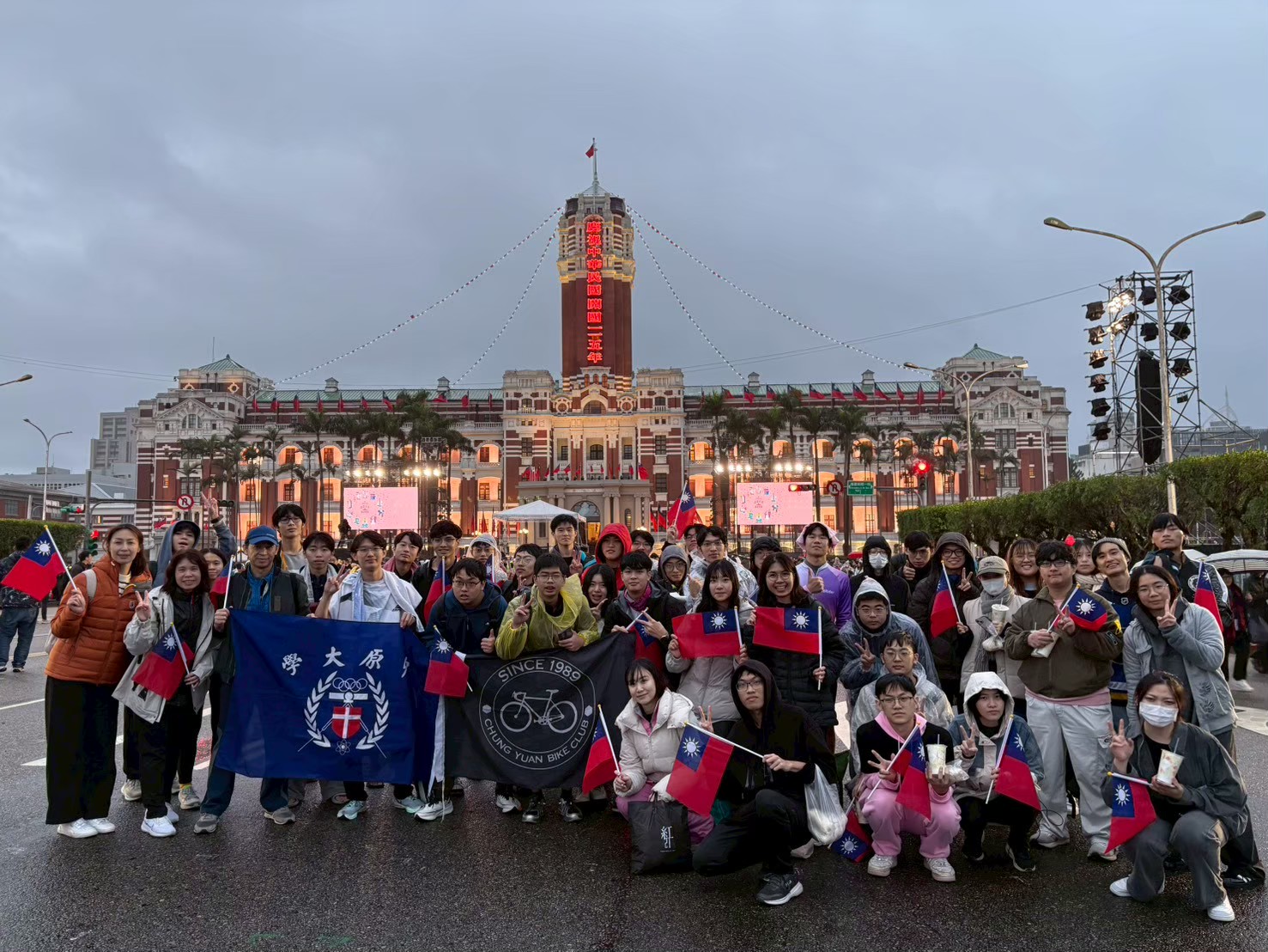 大學4年如何跨年最難忘? 每年由溜冰社、單車社、休閒運動社同學舉辦的「元旦升旗」活動,以溜冰、騎自行車方式,由中原大學出發到台北總統府前參加升旗典禮,完成43公里的自我挑戰最特別,迄今已經傳承37多年。本活動開放全校師長一同參與,除協調警力給予全程安全維護外,同時要求參加者穿著反光背心,讓所有參加者在活動中更有安全的保障,活動結合北、中、南、東各校而來的溜冰社及自行車社同學,每年參加人數超過200人。